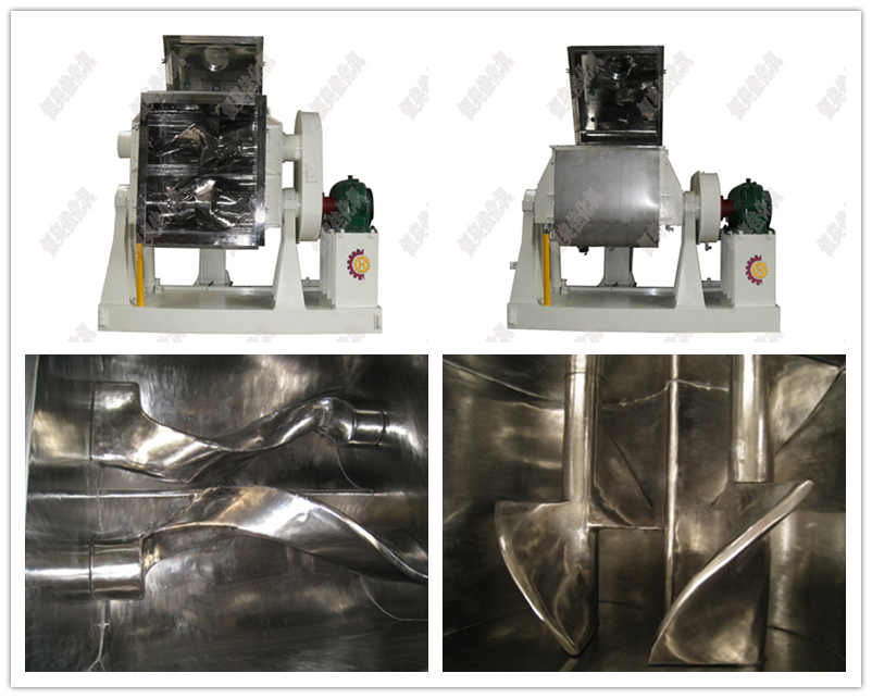 2、 傳動系統中對小型捏合機(5-100升)采用蝸輪或擺線針輪減速機,對大型捏合機(100-6000升)采用硬齒面減速機,使和主機傳動平穩、嗓音小、壽命長。